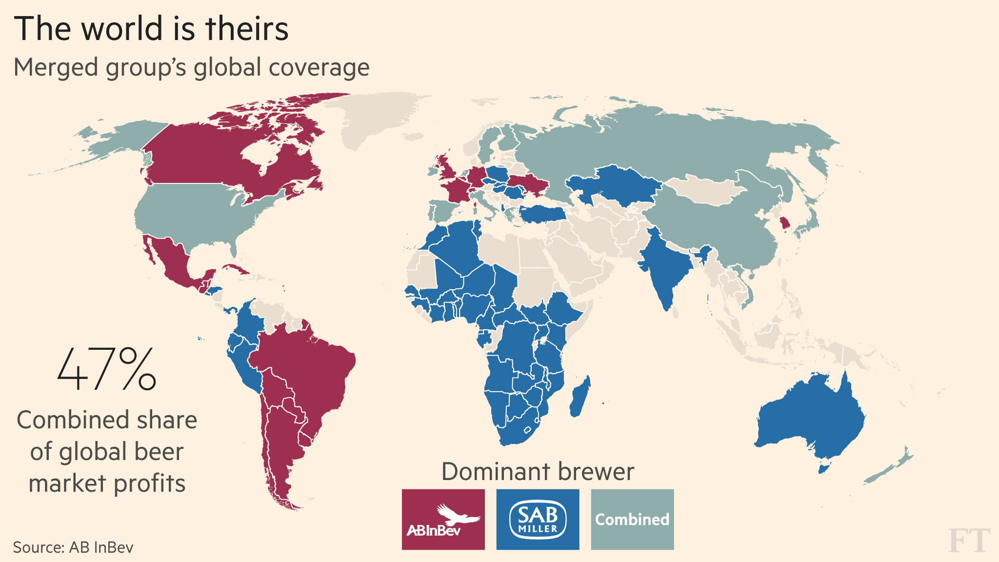 Inbev had operations in over 30 countries and sales in over 130 countries.